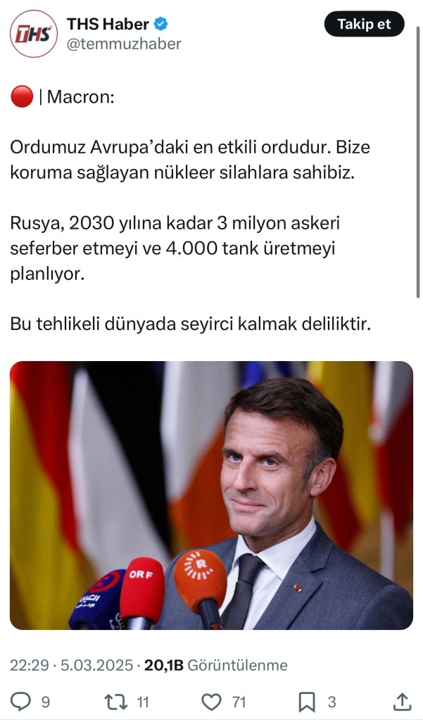 Yakın zamanda Ukrayna’nın neden savaşı uzatması gerektiğini anlatan yazımdan sonra tam da Fransa’nın ne zaman ön plana çıkacağını düşündüğüm bugünlerde Macro’nun sözleri sürecin çok da uzamayacağının kanıtı oldu.